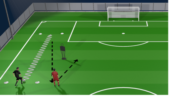 Same as before, but now the Coach presses and follows the player, applying gradual pressure