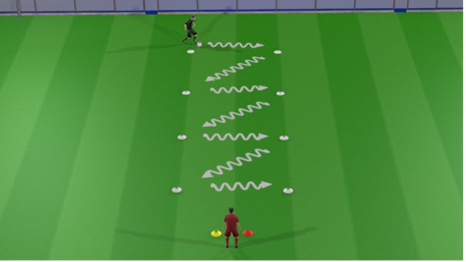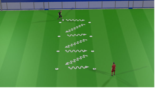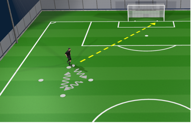 Player starts by performing an Attacking Move and dribbling laterally to the next cone
