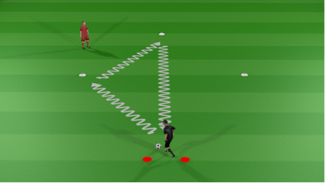 Player then dribbles to the top of the triangle and performs a 180-degree change of direction move