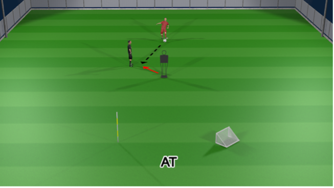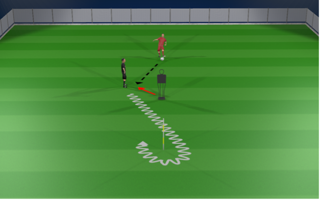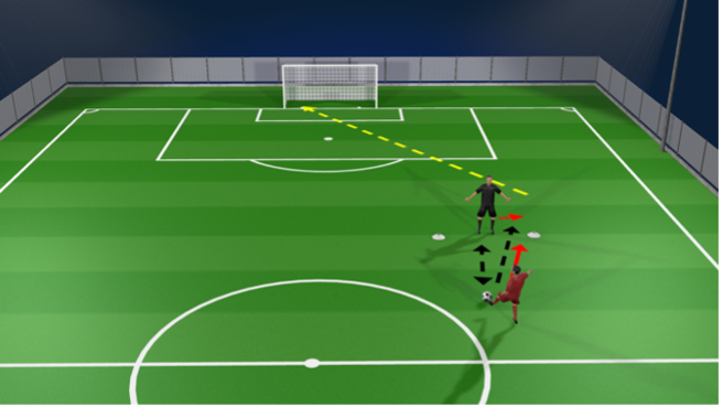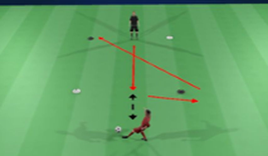 The player runs in front of the marker called, whilst facing the ball, then accelerate diagonally to the bottom marker.