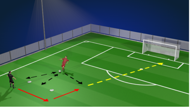 Player then returns back to the middle to play a bounce pass, before moving to the right.