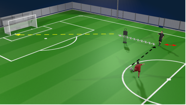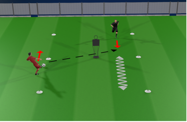Coach dictates which direction the player takes their touch, depending on their movement. E.g. step left = take right, step right = take left.