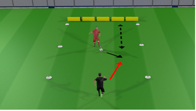 Player dribbles to the bottom of the grid and performs a Change of Direction move.