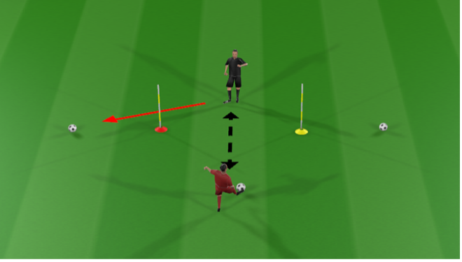 Player must run to shield the ball set at the relevant pole