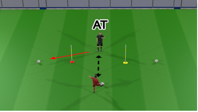 On the coach’s command the player presses the red marker