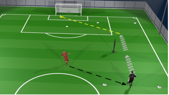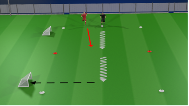 Player then performs one of the stop-start moves and once past the coach pass into the pop-up goal.